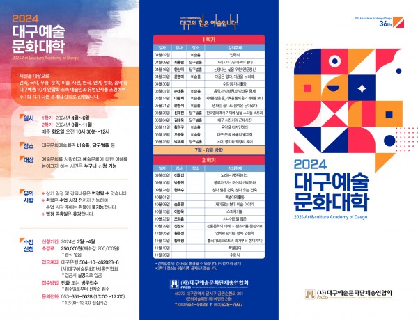 2024 대구예술문화대학 신입생 모집 페이지 정보 작성자 관리자 작성일24-03-15 11:48 댓글0건 관련링크 이전글 다음글 목록 본문 □ 접수방법 : 전화 접수 : 성함, 연락처 > 수강료 입금 >접수 완료 (입학식당일 입학원서 작성) 댓글목록 등록된 댓글이 없습니다. 이전글 다음글 목록